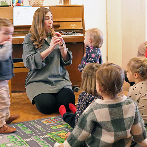 Die Kinder lernen Lieder, Tänze, Musik- und Finger-Spiele. Wir experimentieren zusammen mit Geräuschen und erkunden Tempi, Tonhöhen, Melodien und Rhythmen. Wir erfahren die Freude am gemeinsamen Entdecken von Musik in der Gruppe, was die Beziehung zwischen Kindern und ihrer Bezugsperson stärkt sowie neue Freundschaften entstehen lässt. Das Angebot findet in Englisch statt, Kinder und Eltern aller Sprachen sind herzlich willkommen.