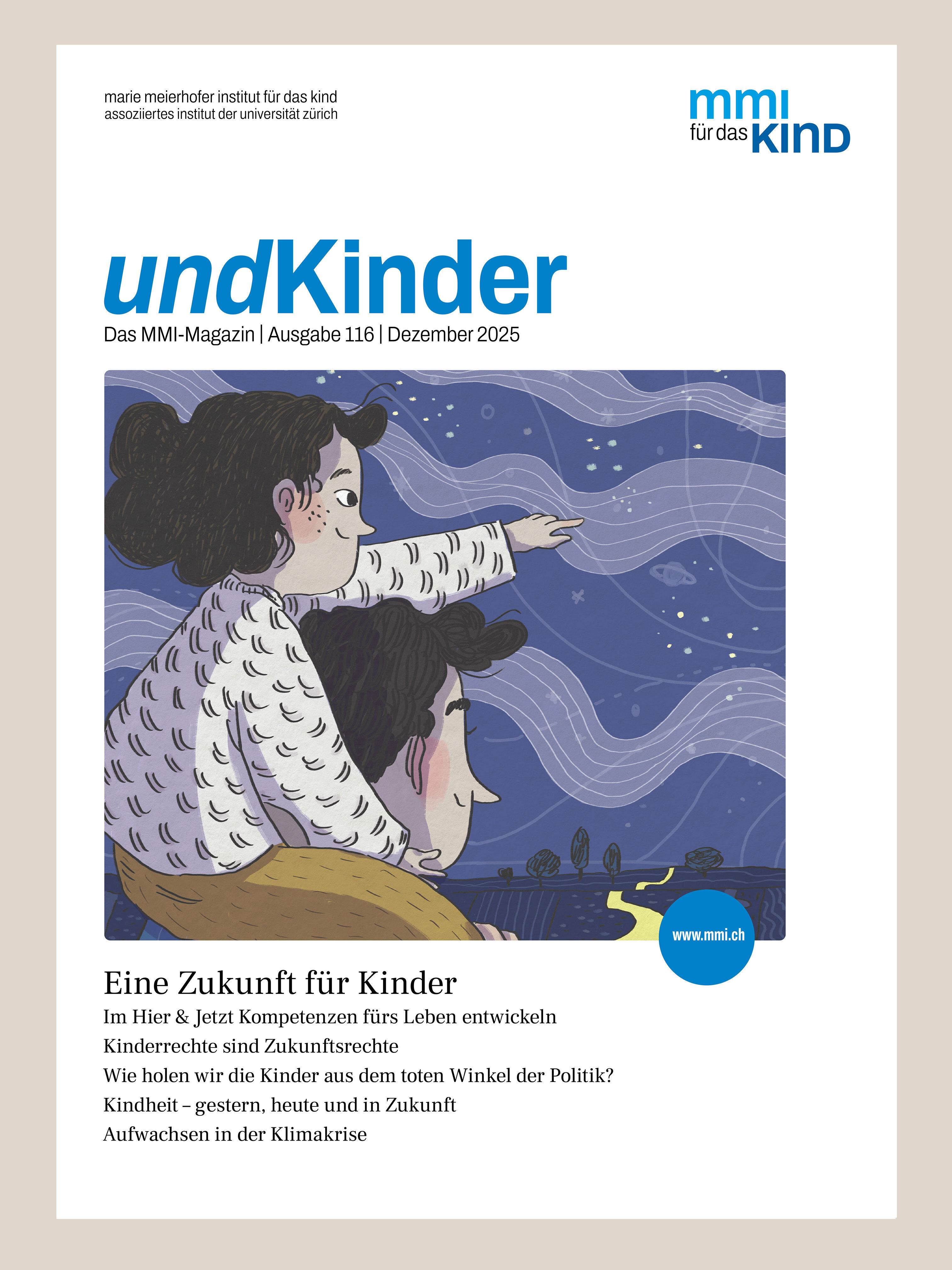 Das zweimal pro Jahr erscheinende Magazin undKinder vermittelt Erziehungsberechtigten, Fachpersonen, Behörden und der Gesell­schaft Wissen, Kompetenzen und Haltungen zu relevanten Schwerpunktthemen der Frühen Kindheit. Expert:innen aus unterschiedlichen Disziplinen ermöglichen den Zugang zu Erkenntnissen aus Forschung & Praxis, zu innovativen Denkanstössen sowie zu praxisorientierten Empfehlungen. Mit Beiträgen aus den MMI-Teams Psychologie, Pädagogik und Forschung sowie renommierter Autor:innen aus anderen Institutionen unterstützt das Magazin die zentrale Zielsetzung des MMI, die bestmögliche Entwicklung von Kindern in unterschiedlichen Lebensumständen zu fördern und problematische Entwick­lung zu verhindern.